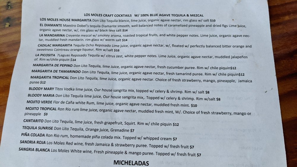 Los Moles Beer Garden is a vibrant restaurant situated in El Cerrito, CA, offering a wide array of Mexican cuisine with a unique twist. The menu features appetizers like Esquite, Cevichile, and Fruta Picada, along with traditional soups and salads. A standout dish includes their authentic Mole Poblano made with over 50 ingredients. Customers praise the restaurant for its spacious seating, friendly service, and diverse menu options. The all-you-can-eat buffet on Sundays allows diners to sample different moles, adding to the dining experience. With a focus on fresh ingredients and bold flavors, Los Moles Beer Garden caters to both meat lovers and vegetarians alike. Overall, the restaurant creates a welcoming atmosphere for large groups and individuals looking to enjoy a flavorful Mexican meal.