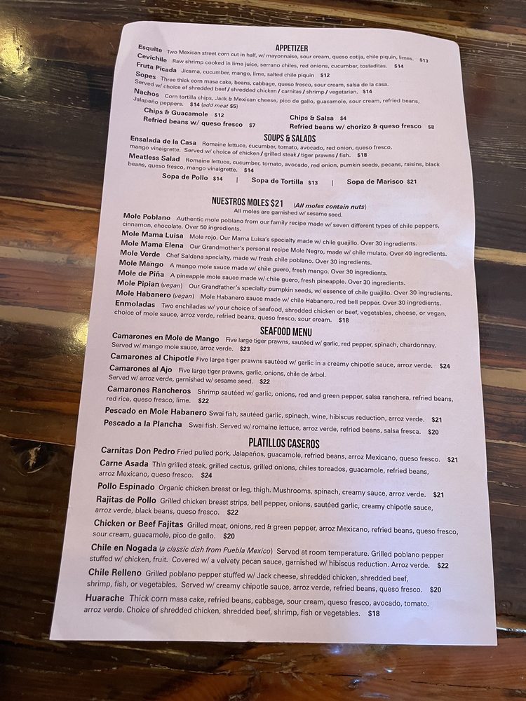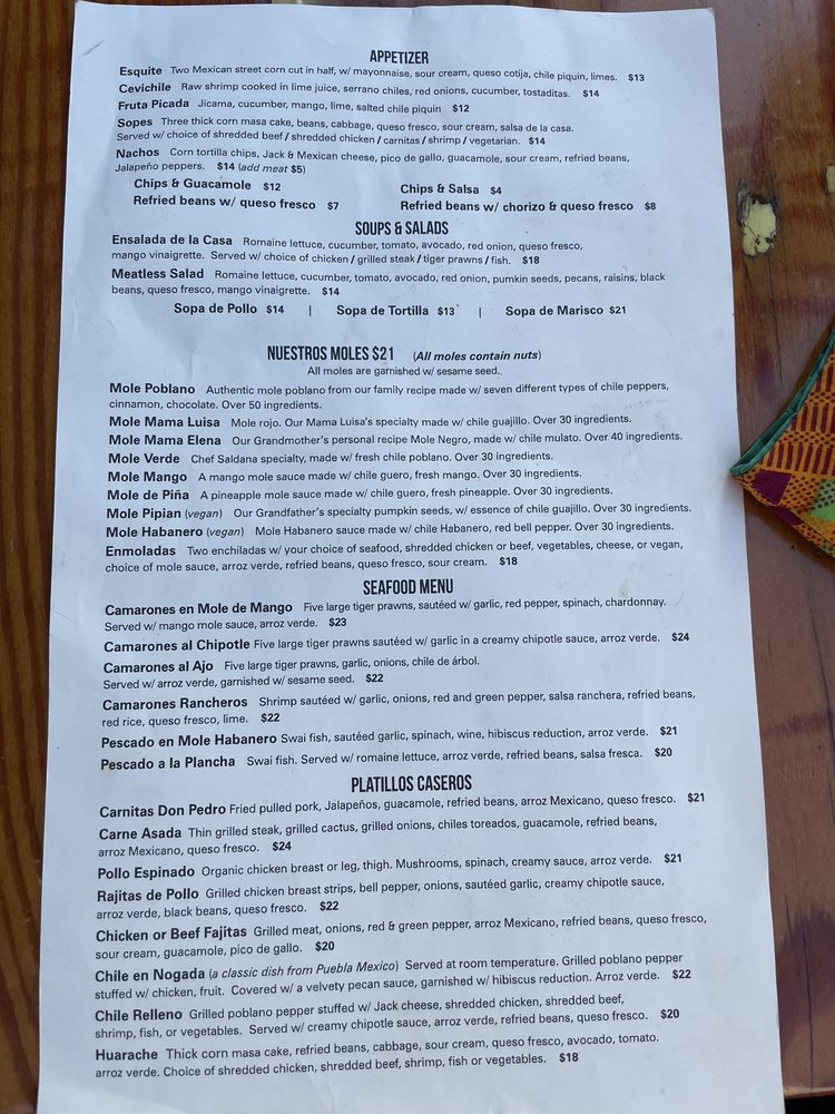 Chef Saldanas specialty, made w/ fresh chile poblano. Over 30 ingredients
